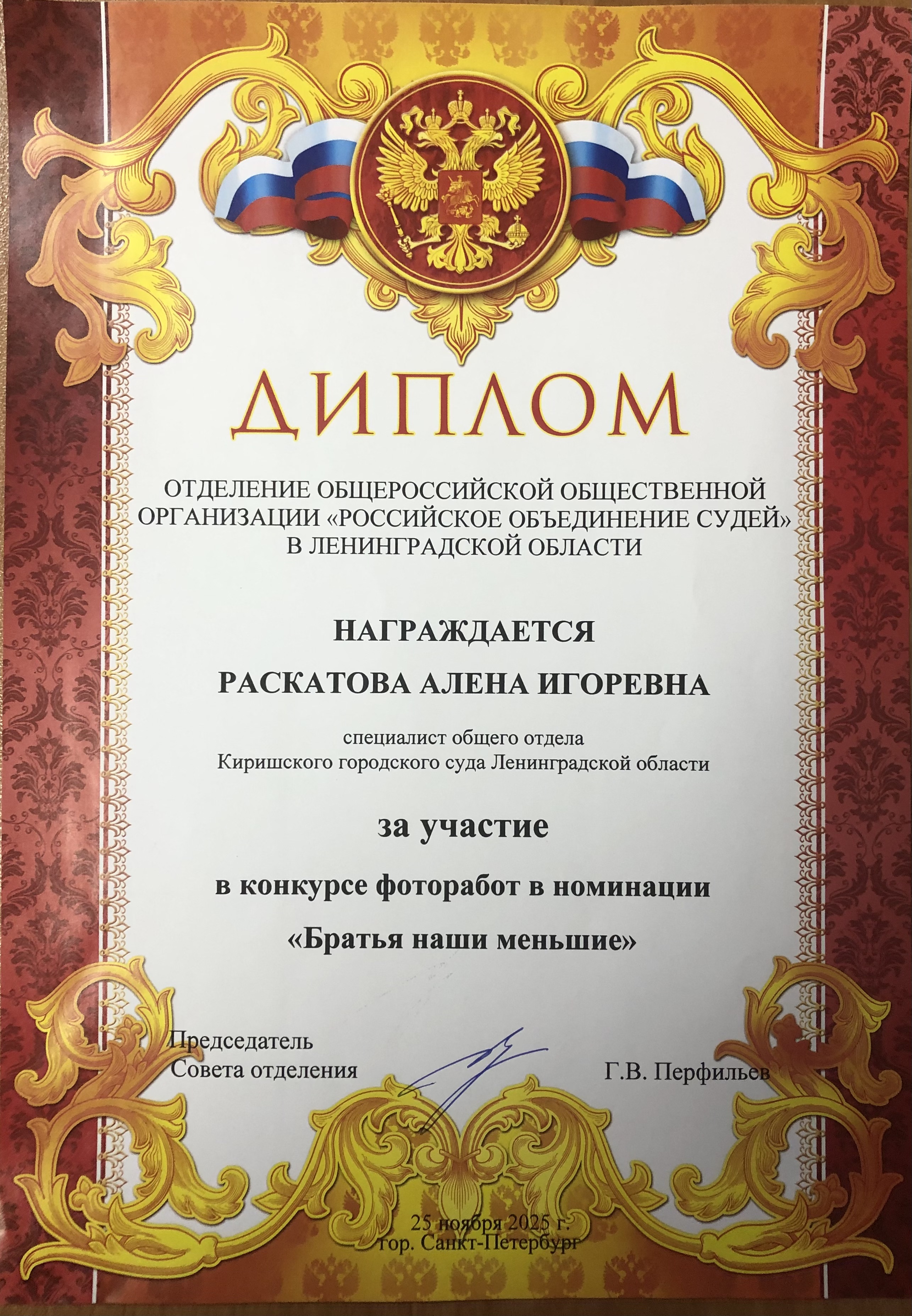 судей» в Ленинградской области проведён конкурс фотографий в номинации